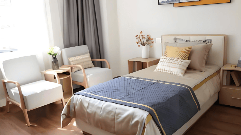 单人间:面积25—28平方米,朝南设计,配备智能床垫(实时监测心率、呼吸)、无障碍卫生间(防滑地胶、助力扶手)、紧急呼叫系统,月费区间为5800—7800元,适合自理型长者;